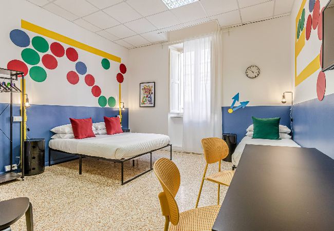 Se sei un amante dei giochi arcade degli anni '90, la Puzzle Bobble Room è il posto perfetto per te! Situata a Livorno, questa esclusiva camera a tema Puzzle Bobble ti offre un’esperienza immersiva, con 3 posti letto (un letto matrimoniale e un letto singolo) e un design che ti riporterà nel mondo del celebre gioco a bolle. È l'ideale per famiglie, coppie o gruppi di amici che vogliono vivere un soggiorno originale e divertente.