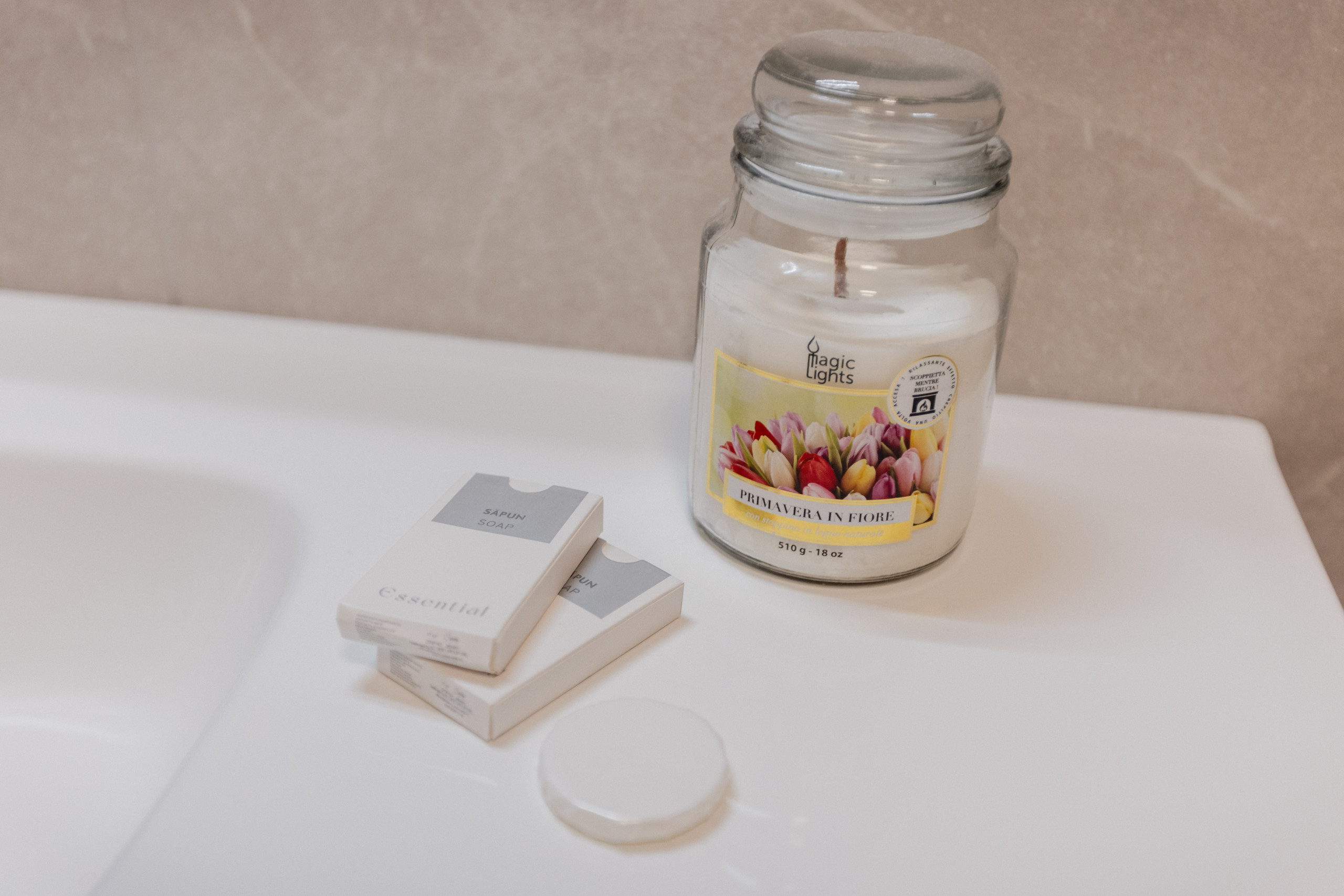 Bagno fornito di biancheria, bagno schiuma e shampoo, phone