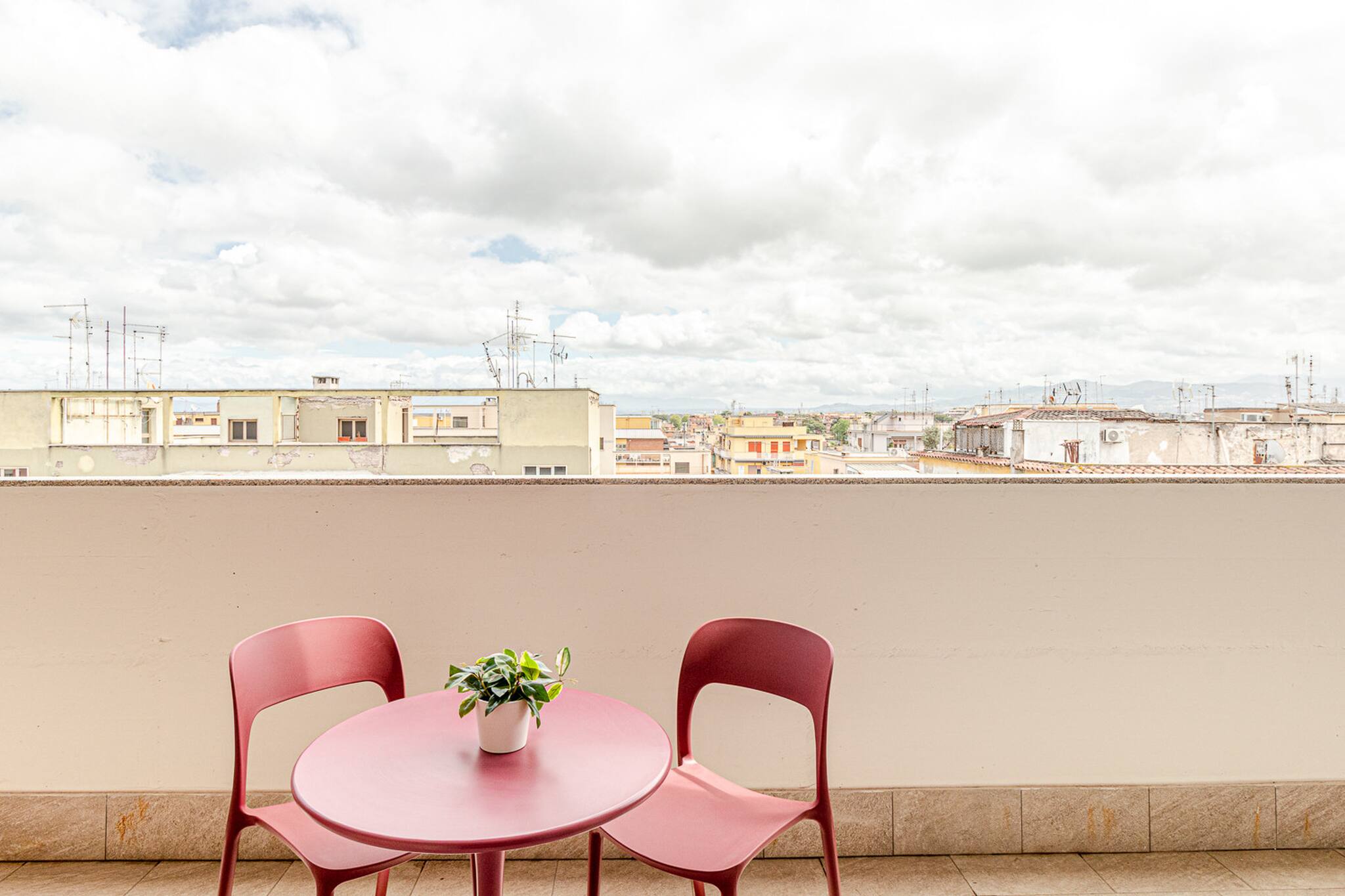 Il appartamento a Roma ha 1 camera(e) da letto e capacità per 2 persone. Alloggio di 50 m². Ha ascensore, 13 m² della terrazza, ferro da stiro, accesso internet (wifi), asciugacapelli, riscaldamento pompa di calore, aria condizionata, parcheggio all'aperto in vicino alla struttura, 1 Televisore.La cucina americana, a gas, è attrezzata con frigorifero, forno, congelatore, stoviglie/posate, utensili da cucina, caffettiera e bollitore.