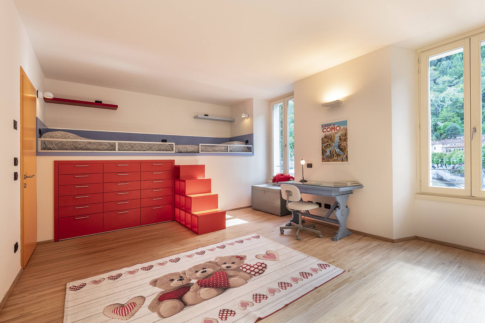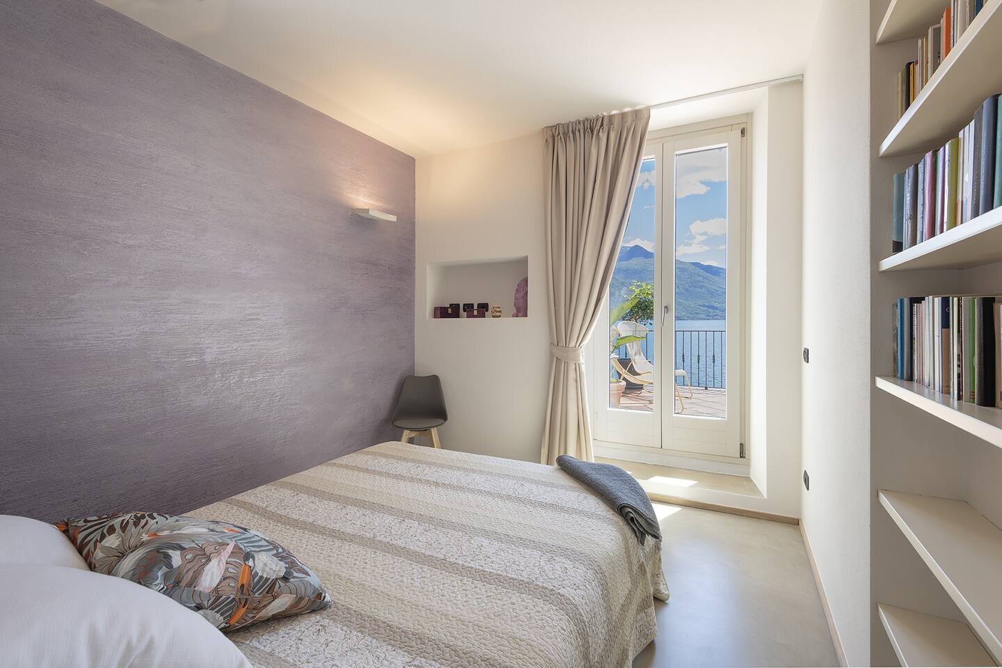 Spacious apartment in Dongo, on Lake Como, ideal for 11 people. Equipped with cooling and underfloor heating. Elegant 200 sq m residence with a bright living room and open-plan kitchen overlooking a 45 sq m terrace with dining table, hammock, and breathtaking lake view. Four stylishly furnished bedrooms: master bedroom with private bathroom and walk-in closet, one single room, one with a double bed and double sofa bed, one with two single beds and double sofa bed. Three total bathrooms.