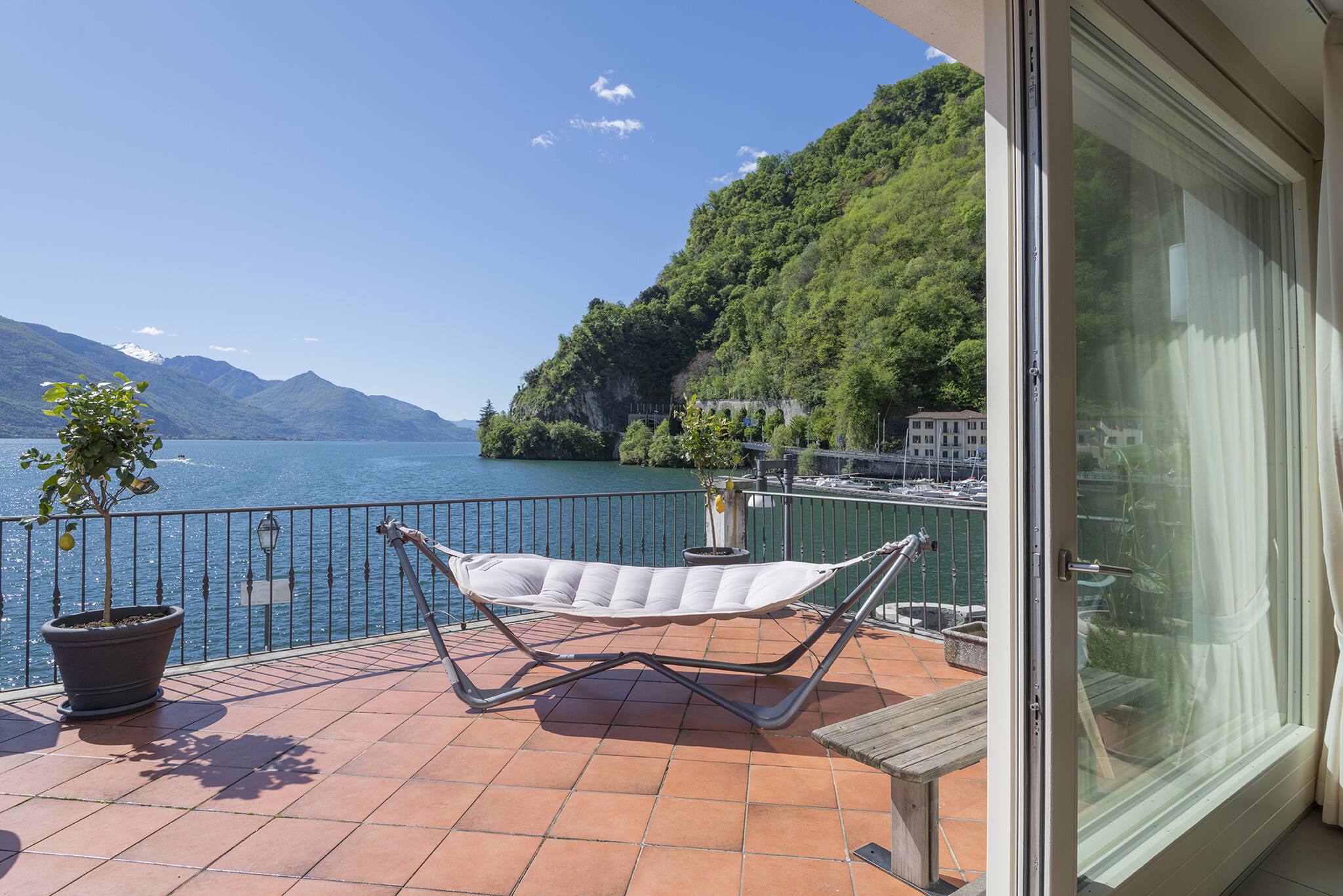 Important: In response to Covid-19, this property has extended cleaning & disinfection measures & protocols to guarantee the safety of our guests Spacious apartment in Dongo, on Lake Como, ideal for 11 people. Equipped with cooling and underfloor heating. Elegant 200 sq m residence with a bright living room and open-plan kitchen overlooking a 45 sq m terrace with dining table, hammock, and breathtaking lake view. Four stylishly furnished bedrooms: master bedroom with private bathroom and walk-in closet, one single room, one with a double bed and double sofa bed, one with two single beds and double sofa bed. Three total bathrooms. Elegance and comfort.