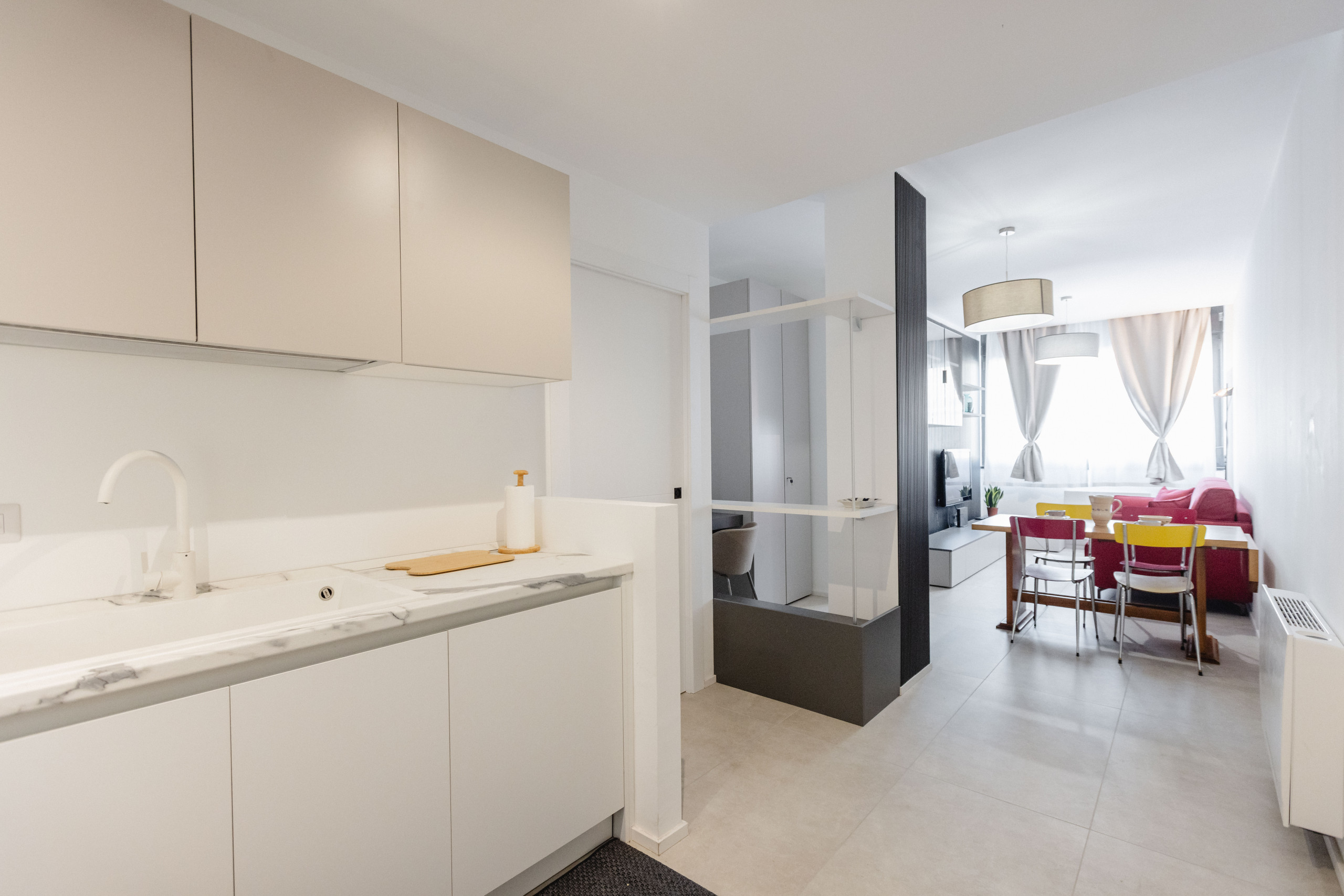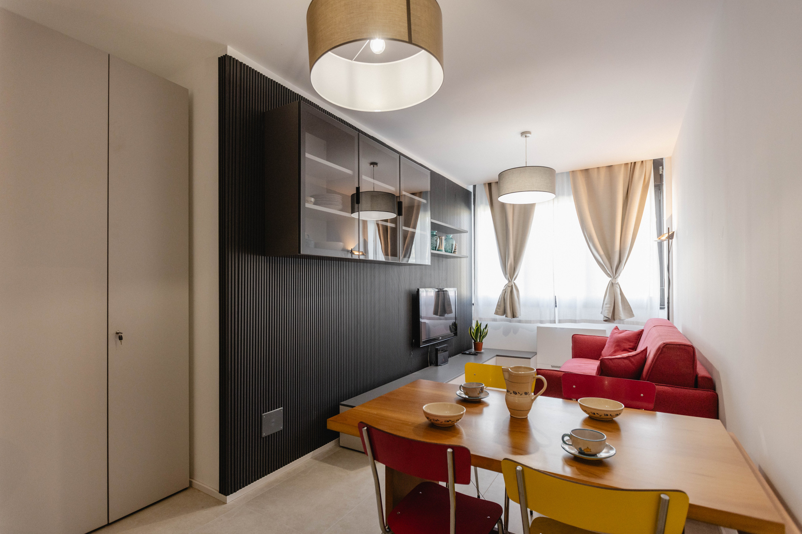 Merlata64 is an elegant and bright apartment on the 13th floor of the Social Village in Cascina Merlata, one of Milan's most modern areas. Ideal for couples, professionals, families and four-legged friends, it combines comfort, design and tranquillity. Near M1 Molino Dorino, Merlata Bloom, MIND, Fiera Milano, San Siro and Galeazzi/Sacco Hospital. In a green and safe area, with parks (various dog areas) and restaurants nearby. The neighbourhood has several ATM line 35 stops leading to the nearest metro M1 Molino Dorino, which reaches the Duomo in 20 minutes. The Merlata Bloom Shopping Centre, in addition to having a wide selection of shops and restaurants, features a multiplex CINEMA, play areas for children (Green Forest) and adults (Log Lot of Games). Merlata64 is a short distance from Cascina Merlata Park, 300.00 sq m of green space with various dog areas and playgrounds, with 24-hour surveillance.