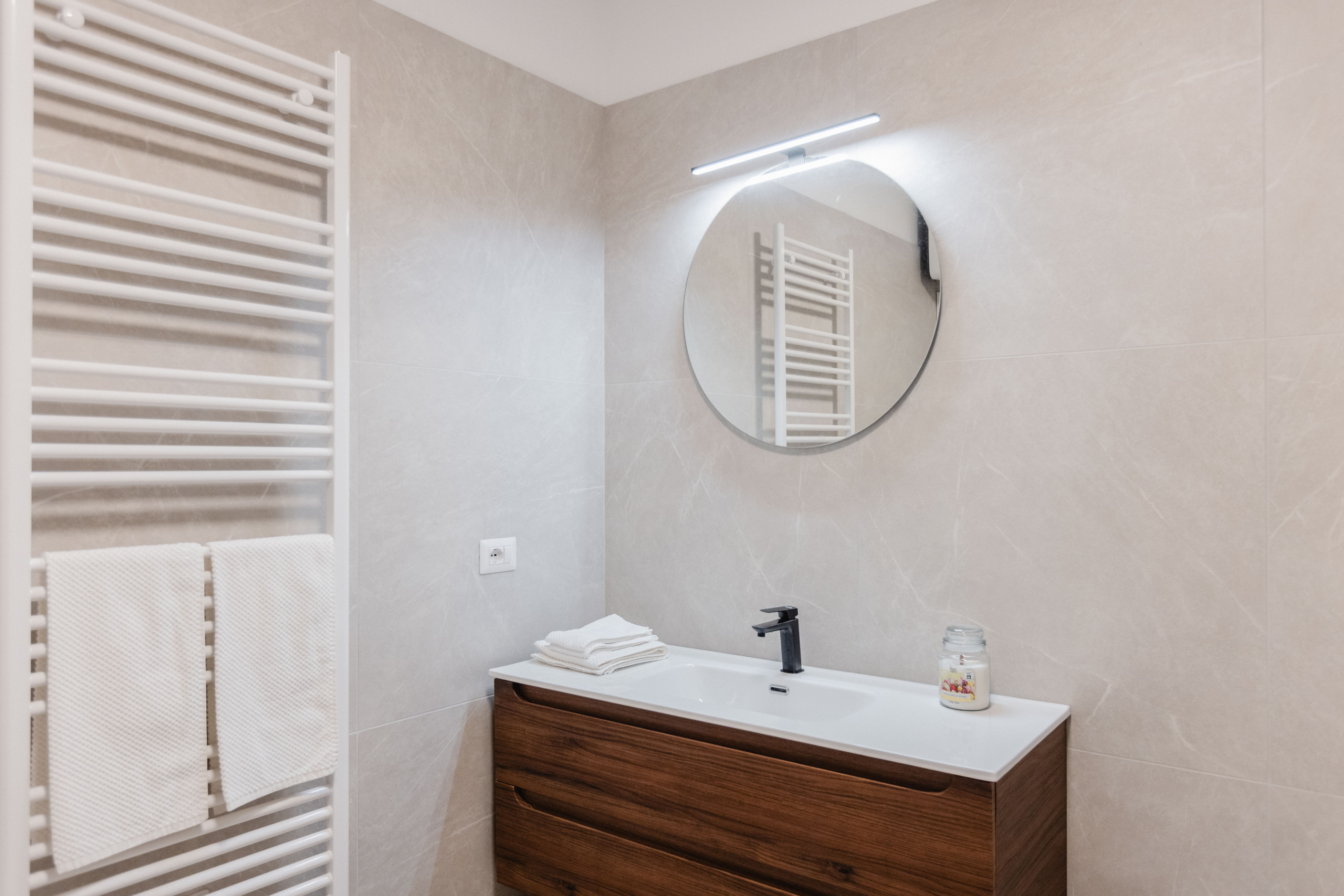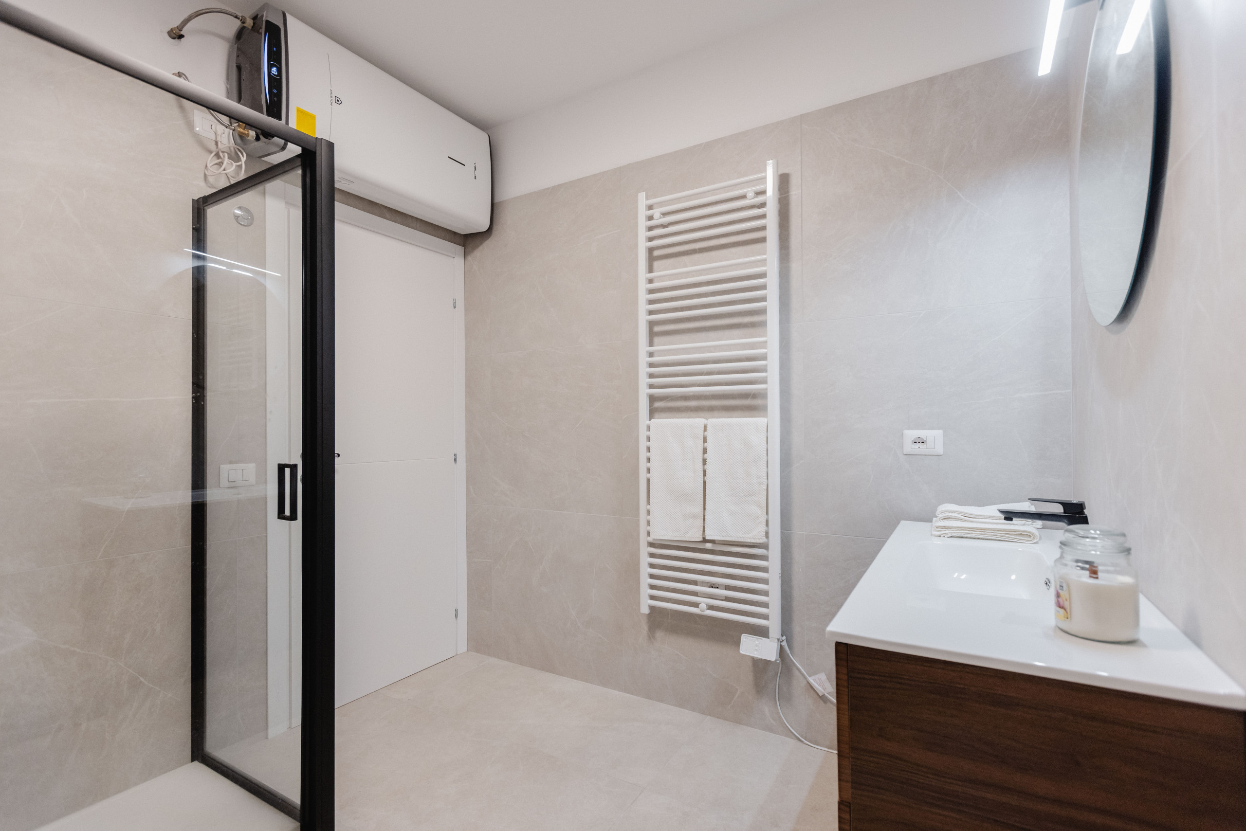 The apartment has been designed to ensure maximum comfort and a worry-free stay. It is fully equipped with everything necessary: kitchen utensils, bathroom accessories, quality bedding and towels. Every detail is designed to offer practicality and well-being to guests. The spaces, modern and elegant, are spacious and bright, furnished with taste and care. Thanks to excellent soundproofing, the apartment guarantees a tranquil and quiet atmosphere, ideal for moments of relaxation or work. Outside, there is a large balcony, perfect for enjoying an outdoor space in total privacy. The underfloor heating and cooling system ensures maximum comfort in every season, maintaining the temperature always pleasant and uniform. The neighbourhood meets all needs: a shopping centre, a large park and convenient connections to the city centre are just a few steps away. An ideal solution for those seeking a modern, welcoming stay with every comfort.