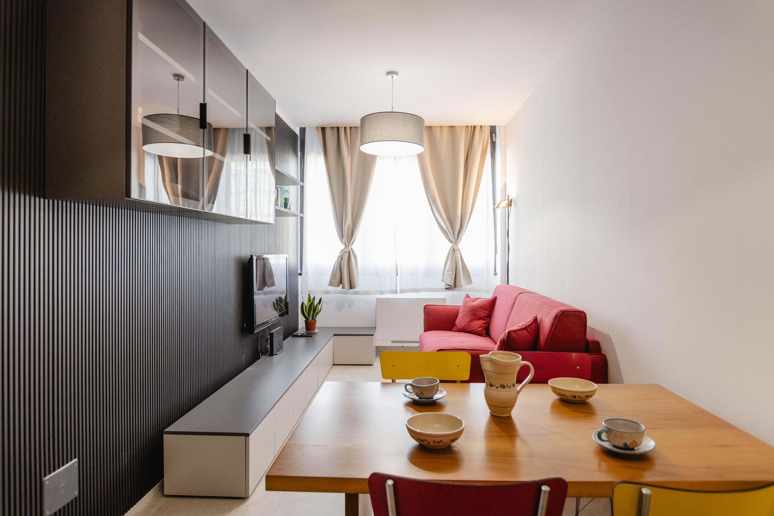 The apartment in Milan has 1 bedrooms and has capacity for 4 people. The apartment is 57 m². The accommodation is equipped with the following items: washing machine, internet (Wi-Fi), hair dryer, air-conditioned, 1 TV. In the electric open plan kitchen, refrigerator, microwave, oven, dishes/cutlery, kitchen utensils, kettle and juicer are provided.