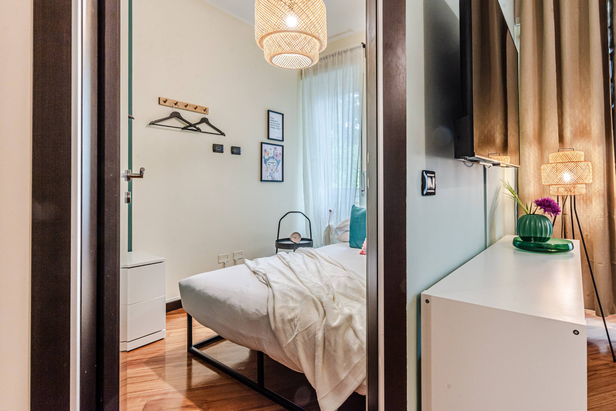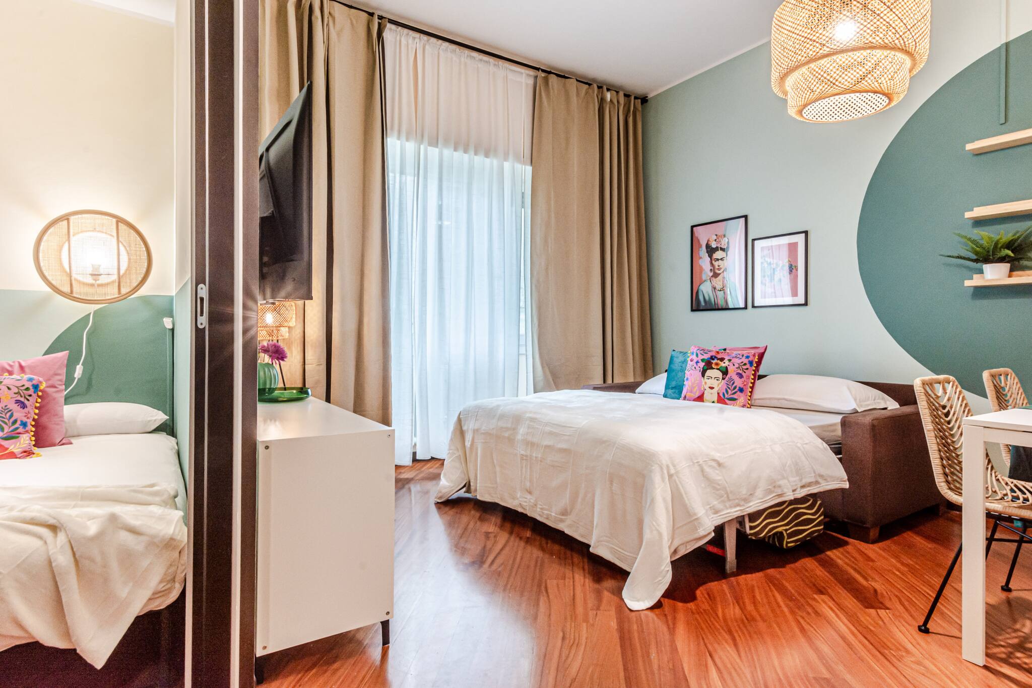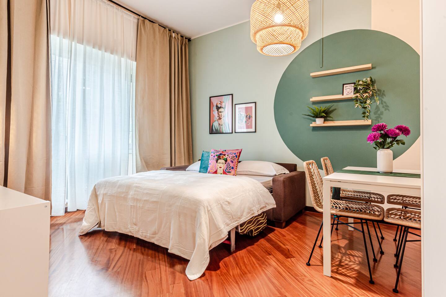 The Charm of Monna Lisa a Stone's Throw from Milano Centrale Let yourself be enchanted by a unique stay in the heart of Milan!A few steps from Central Station, this elegant two-room apartment with a Monna Lisa theme combines art, comfort and practicality in an unforgettable experience. A Touch Of ArtEvery corner of the apartment is inspired by the mystery and timeless beauty of the Mona Lisa: artistic details, refined colours, and an atmosphere that will make you feel like you're in a small personal museum, but with all the comforts of home. Bright & Welcoming Living AreaThe living room, flooded with natural light, welcomes you with a comfortable sofa bed and an elegant dining table for 4 people.The kitchen is super equipped: kettle, refrigerator, oven, toaster, coffee machine and hob... everything you need to prepare a perfect breakfast or a homemade Italian dinner.And to relax? There's also the Tv! Dream Double BedroomA very comfortable bed, soft sheets and another Tv to enjoy your evening in complete relaxation. The Monna Lisa theme continues here, among artistic details and a relaxing atmosphere. Modern & Functional BathroomSpacious shower, comfort and impeccable cleanliness. A wellness corner after a day among museums, shopping and Milanese aperitifs. Strategic LocationMilan Central Station is truly just a few steps away: trains, metro, airports and shuttles... everything within reach.Perfect for those travelling for work, for a romantic weekend or to explore the city without stress. Book now and experience Milan with the elegance of Monna Lisa!A stay that combines art, comfort and an unbeatable location.We are waiting for you!