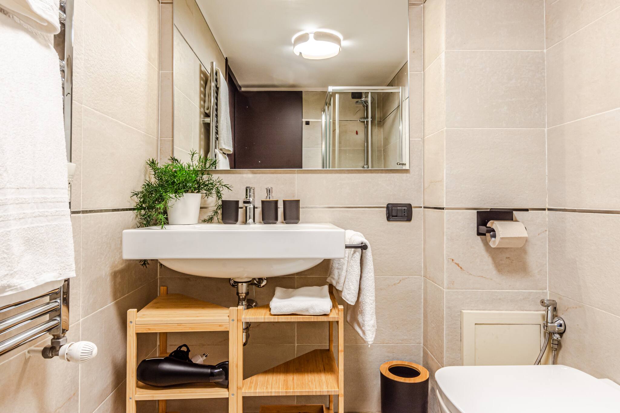 The apartment in Milan has 1 bedrooms and capacity for 3 people. Accommodation of 50 m². The accommodation is equipped with the following items: washing machine, iron, hair dryer, central heating, 1 Tv. The open plan kitchen, of induction, is equipped with refrigerator, microwave, oven, freezer, dishes/cutlery, kitchen utensils, coffee machine and kettle.