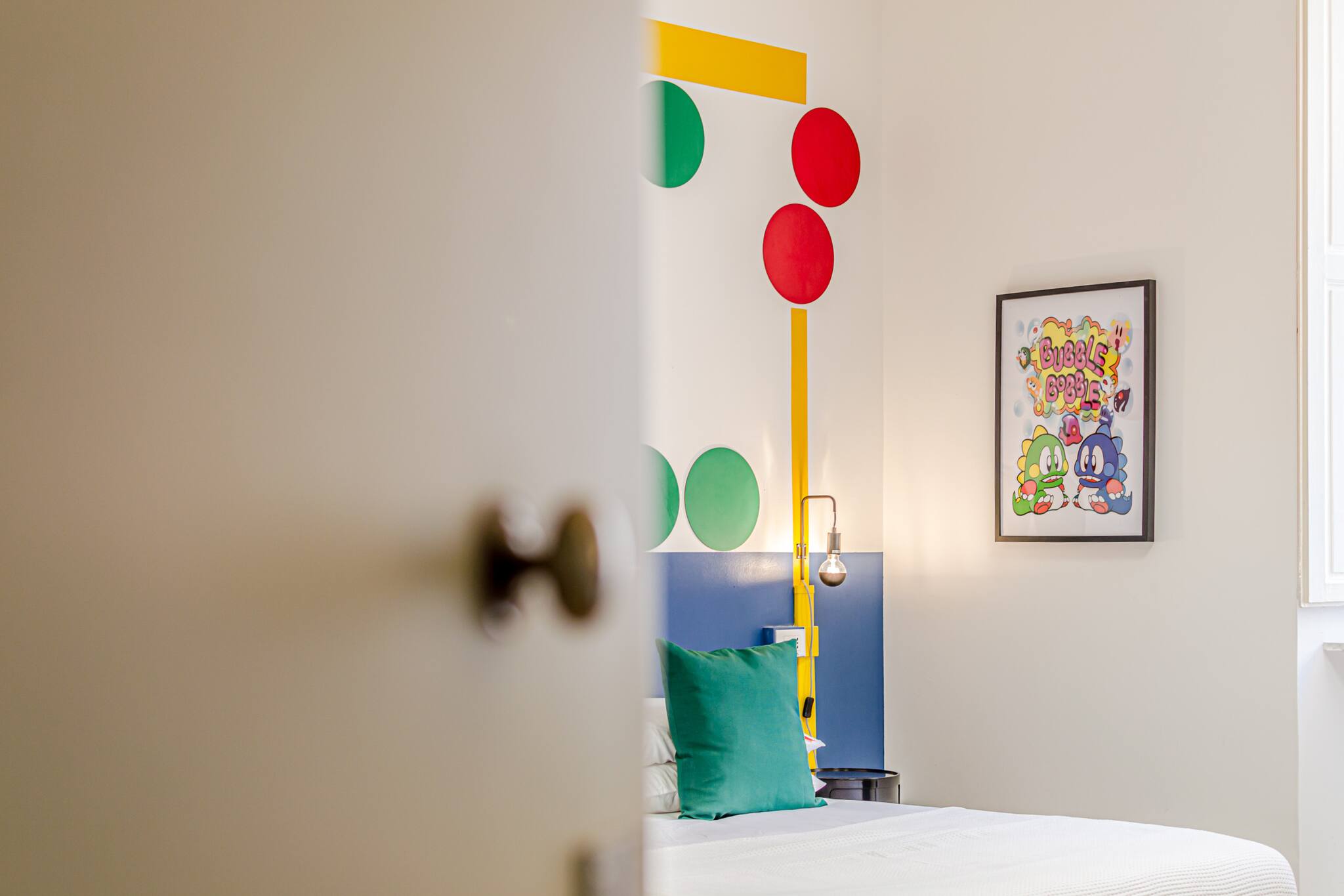 Thematic design – The room is decorated with details and colours inspired by Puzzle Bobble, creating a unique atmosphere for every game enthusiast. Comfort and safety – A safe is available to store your personal items with peace of mind. Ideal climate – Air conditioning and heating with heat pump to ensure a comfortable stay in every season. Private bathroom – The bathroom is equipped with a hairdryer for your convenience. 3 Sleeping Spots – With a double bed and a single bed, the room is perfect for groups of 3 people, offering comfort and originality.