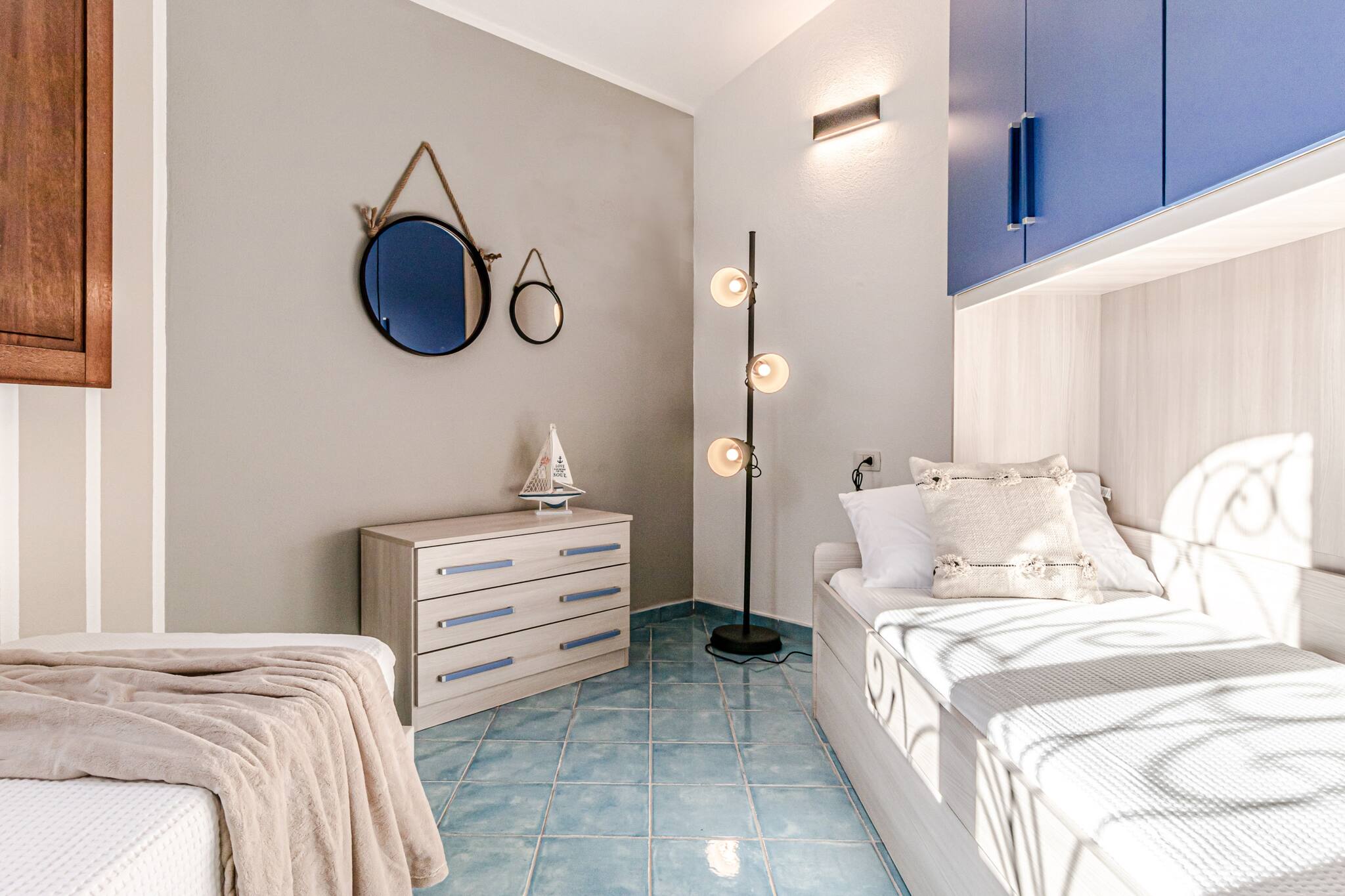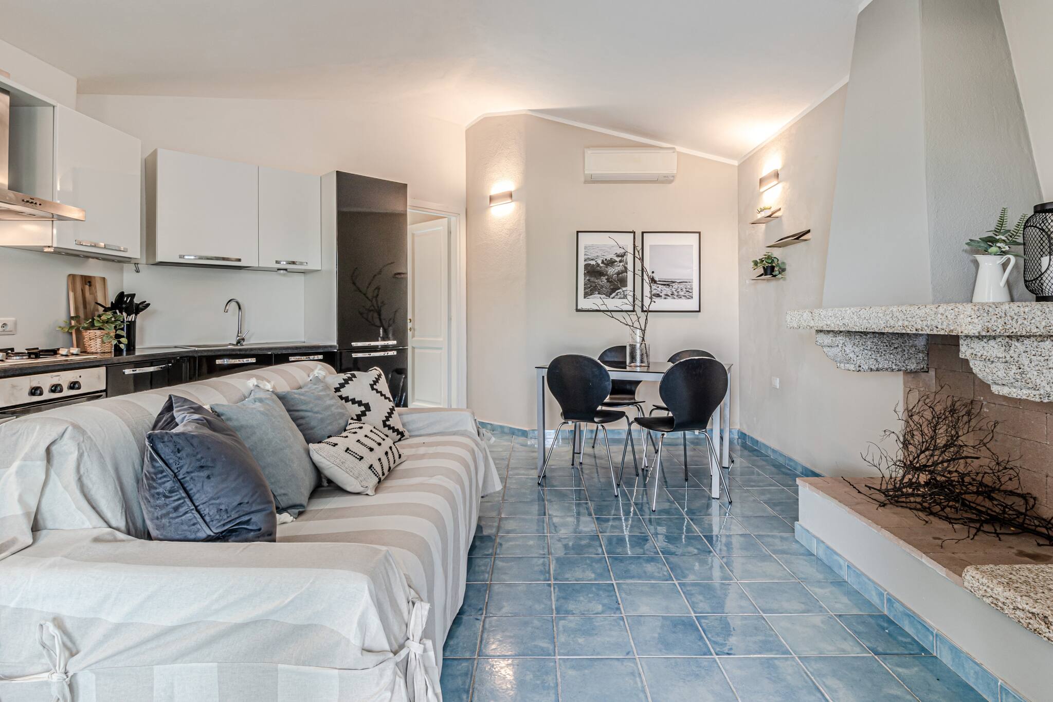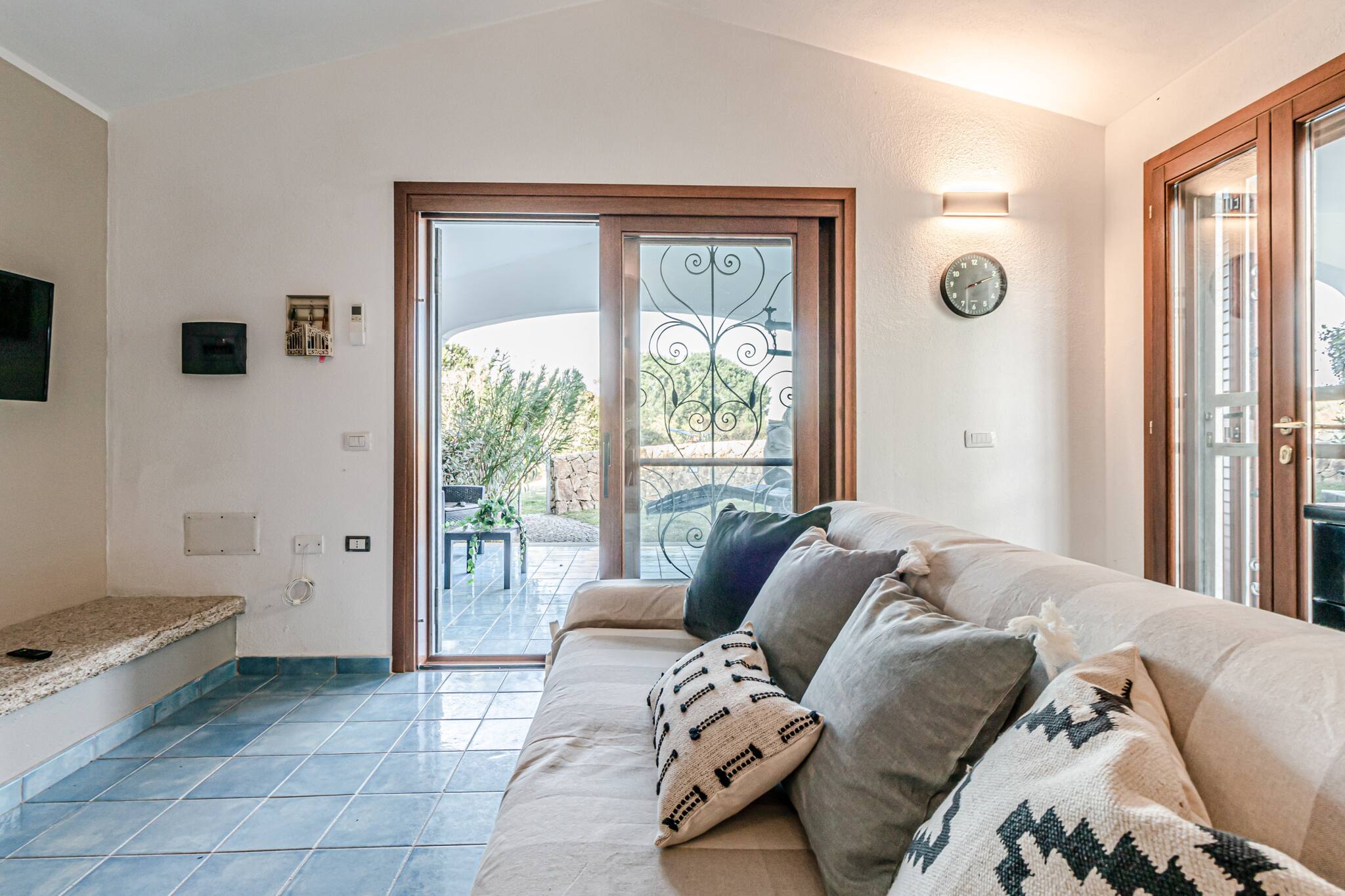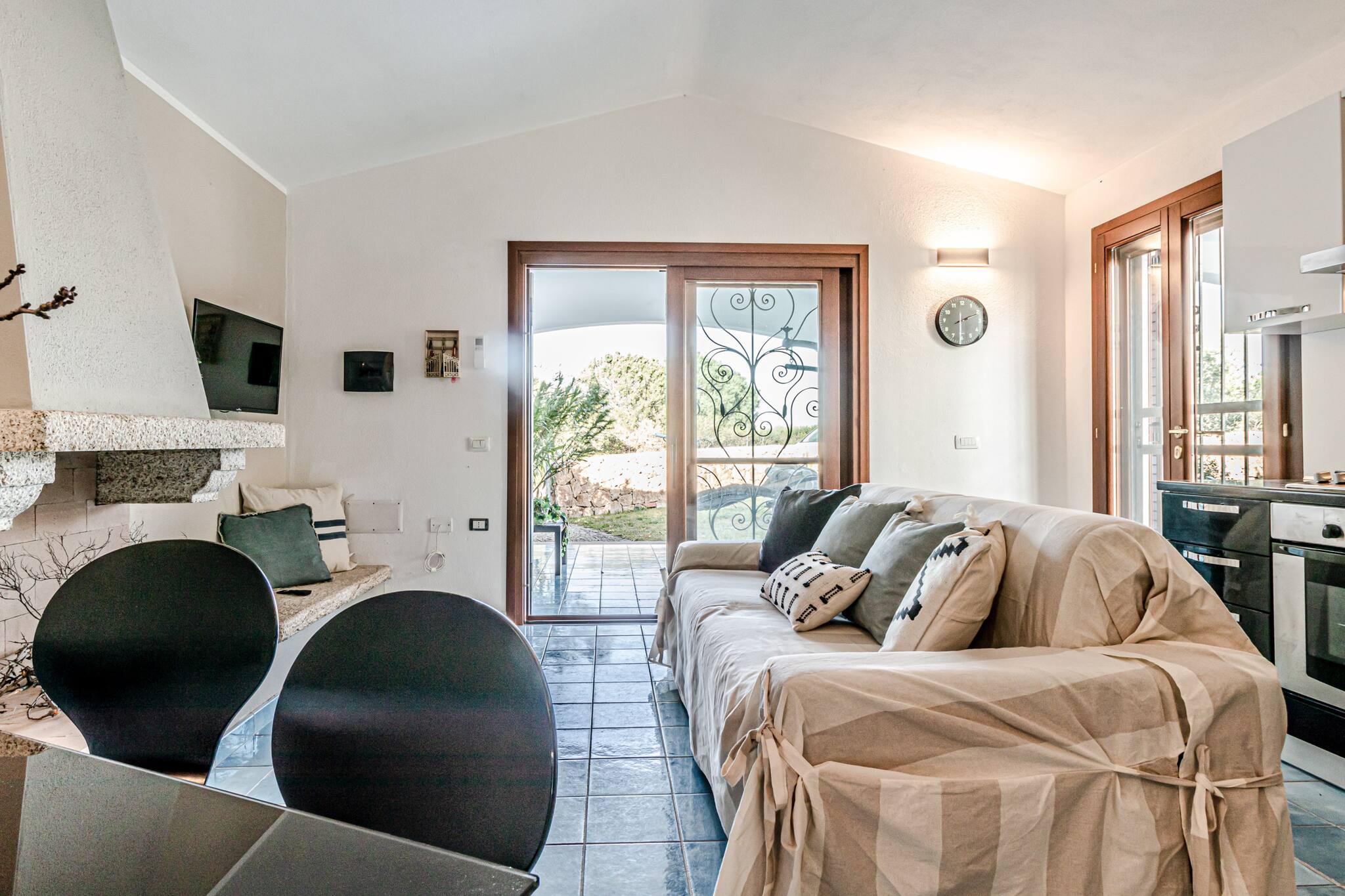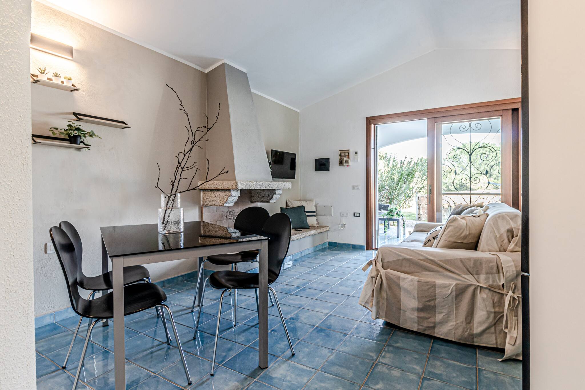 Interior Description Lovely villa in Baia Sant'Anna (hamlet of Budoni), a few steps from the sea. Located in a quiet area, it has a private garden, terrace, veranda and outdoor shower. It consists of living room/ kitchen with sofa, Tv, dining table and chairs; Double bedroom; bedroom with bunk bed and double bed; bathroom with shower; garden and veranda to spend excellent time outdoors and wonderful terrace where you can dine under the stars. We have taken care of every detail of the spaces, in order to offer a comfortable and unique experience.