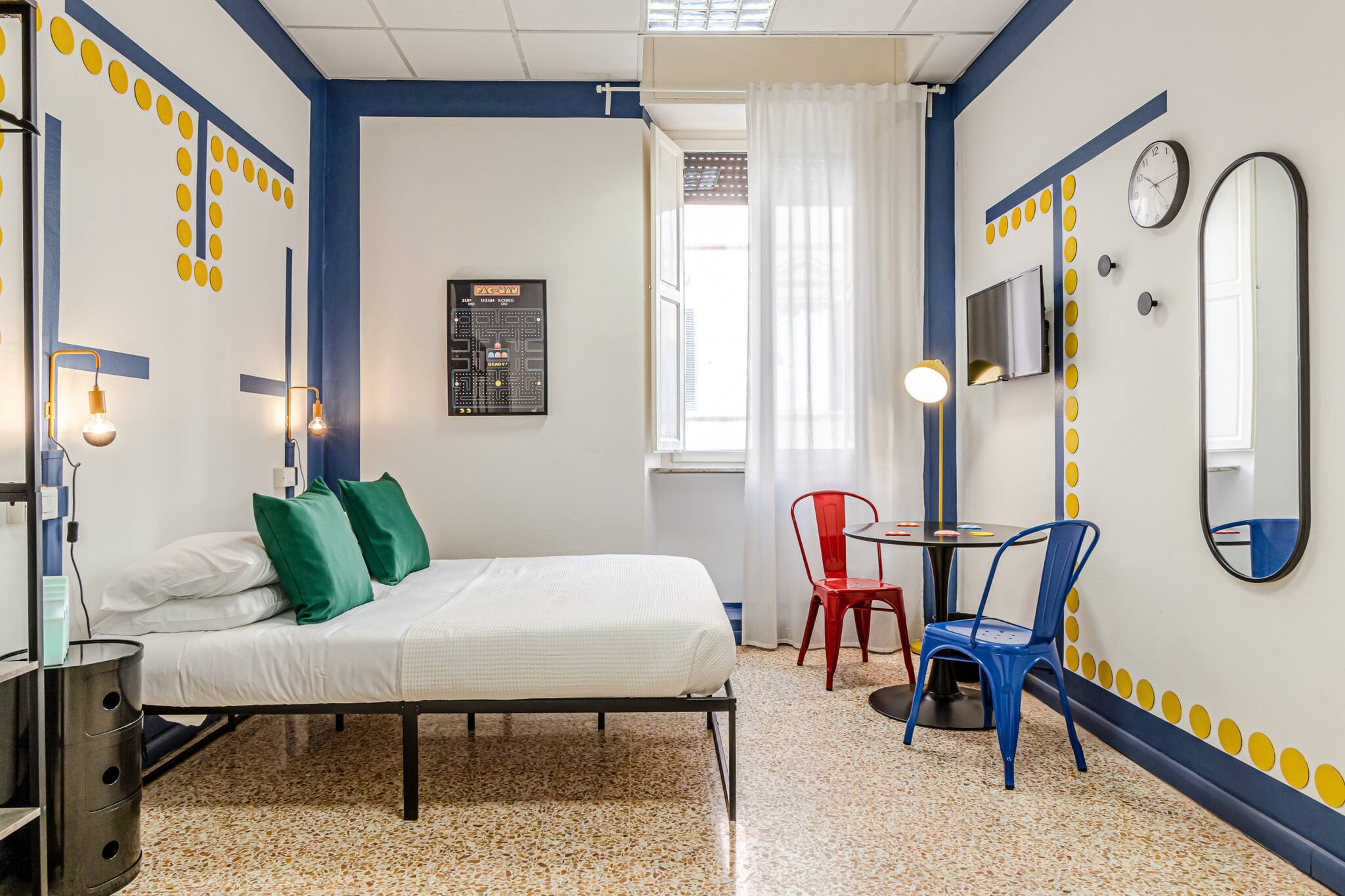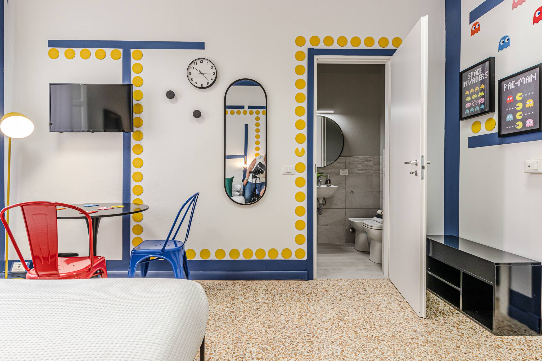 Si eres un fan del legendario Super Mario y de los juegos arcade de los años '80 y '90, ¡la Super Mario Room en Livorno es el lugar perfecto para ti! Con un diseño temático que te sumergirá en el mundo del famoso fontanero italiano, esta habitación ofrece el máximo confort para 2 personas. La cama matrimonial te garantiza una estancia relajante, mientras la atmósfera nostálgica del tema arcade te acompañará durante toda tu experiencia.